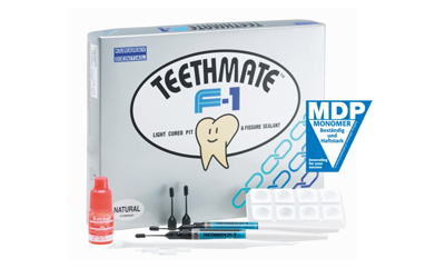 Light-cured pit and fissure sealantNew, single-liquid formulation of TEETHMATE F-1 makes it fast and easy to provide your patients with a great defense against caries. TEETHMATE F-1 light-cure pit & fissure sealant that contains a new proprietary fluoride-releasing polymer plus the proven adhesive monomer MDP (10-Methacryloyloxydecyl dihydrogen phosphate) the monomer which has made Panavia and CLEARFIL SE BOND so clinically successful. And because TEETHMATE F-1 is unfilled, it penetrates deeper into pits & fissures, for better long-term sealing and minimal occlusal wear. |