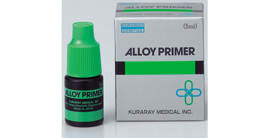 Clinic IndicationsALLOY PRIMER is used to enhance the adhesion between dental materials and the resin-based materials shown below: 1. Adhesion of metal inlays, onlays, crowns and bridges, Adhesion of metal cast posts → Dental adhesive resin cement 2. Repair of fractured resin-based facing crowns and porcelain- fused metal crowns and bridges → Dental bonding agents and restorative composite resin 3. Fabrication of removable dentures with metal base, clasp or attachment → Denture base acrylic resins 4. Repair of dentures → Denture base acrylic resins | Feature and Benefits• Multiple indications • Intra- and extra- oral use • Increase of bond strength to gold • Increase of bond strength to semi-precious metals • Elimination of tin-plating • Simple to use & time-saving |